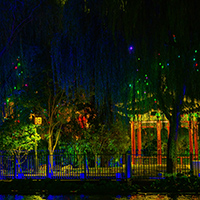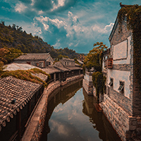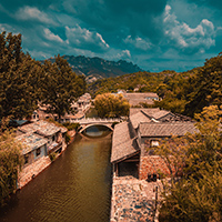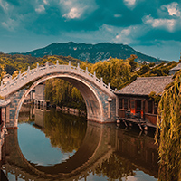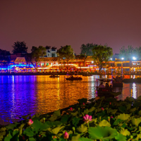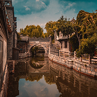 Это город на воде, вдохновленный южнокитайским Чжоучжуаном, но с духом севера. Каналы вместо улиц, арочные мосты, старинные домики с серыми черепичными крышами. Вечером зажигают тысячи фонарей — будто попал в фильм Чжан Имоу!