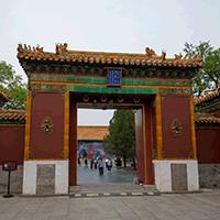 От входа из храма на север тянется достаточно длинная аллея, которую принято называть «императорской дорогой», в конце ее туристов ждут ворота Чжаотаймэнь, то есть Ворота Объявления мира. За ними находятся еще одни ворота — Юнхэмэнь, которые ранее служили входом в дворец Юн-цинвана. Именно за этими воротами и начинается знаменитый монастырь Юнхэгун, который делится на ряд павильонов, разбивающих всю территорию на изолированные секции.