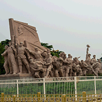 Перед мавзолеем расположен Памятник народным Героям, посвященный народным героям, которые боролись с разной контрой с Первой опиумной войны (1840) до образования КНР (1949). Несмотря на кажущуюся внешнюю простоту, строили монумент 6 лет, вбухали в него 17000 мраморных и гранитных блоков и теперь он весит 10 000 тонн. Высота 38 м. На памятник нанесены барельефы по событиям в хронологическом порядке: