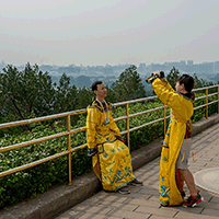 На самой высокой точке горы высотой 43 метра в центре парка расположена беседка Ваньчуньтин, которая считается центром исторического Пекина (на фото у меня ребята в нац. костюмах фотографируются... вот та самая беседка и есть)